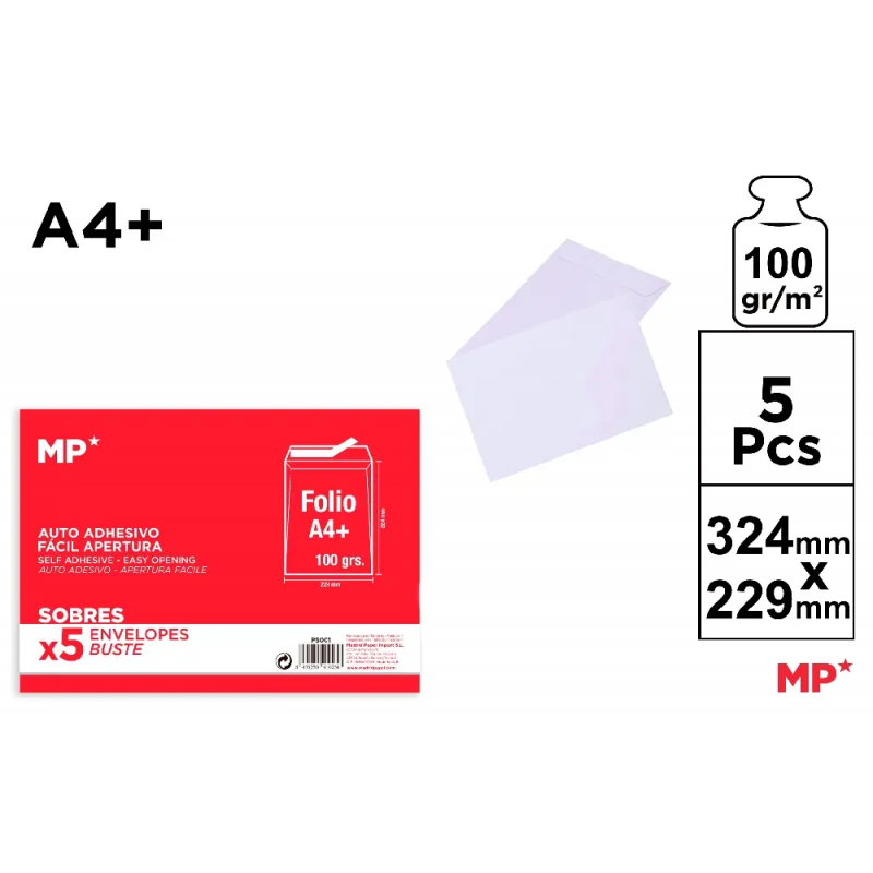 5 SOBRES BLANCOS TAMAÑO FOLIO A4