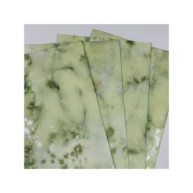 Set de 4 papeles A4 teñidos en tonos verdes, cada página es diferente porque están teñidas manualmente y todas quedan diferentes....