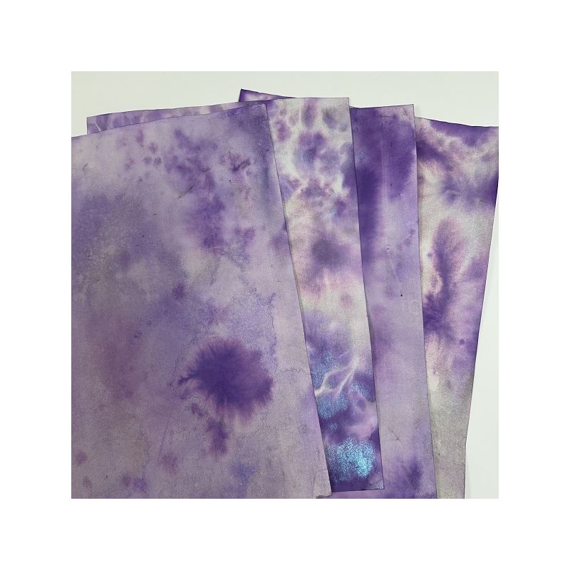Set de 4 papeles A4 teñidos en tonos lilas, cada página es diferente porque están teñidas manualmente y todas quedan diferentes....