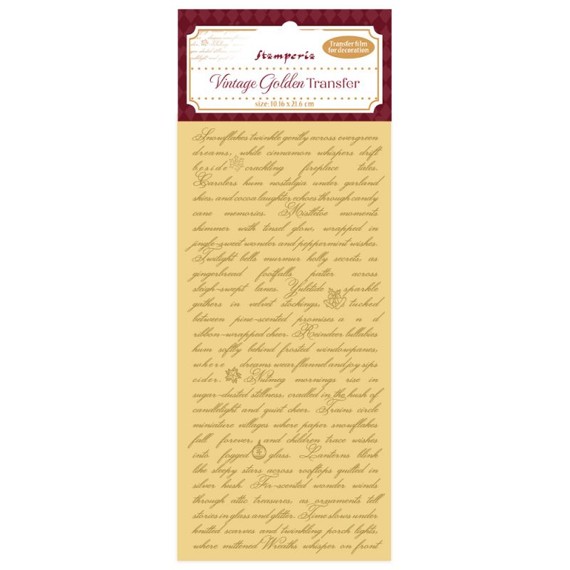 Añade un toque de elegancia atemporal con esta lámina dorada transferible, que incluye marcos vintage, motivos florales, letras y fondos decorativos. Perfecta para superponer en diarios y álbumes de recortes. Combina a la perfección con varias colecciones de Stamperia. Fácil de aplicar, ¡para añadir un detalle lujoso a cada creación creativa!