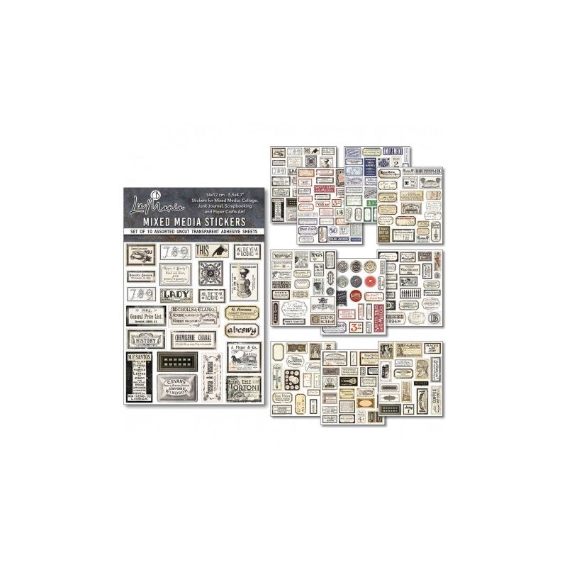 Pegatinas MIXMEDIA: Un montón de imágenes en hojas adhesivas transparentes sin cortar para crear collages, scrapbooking, tarjetas y manualidades con papel.