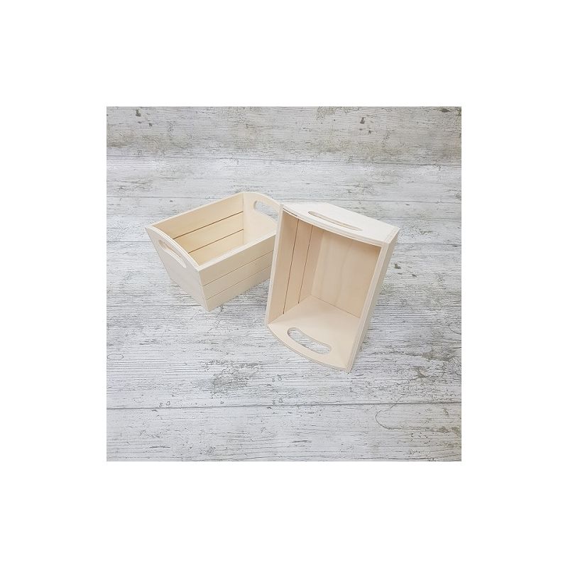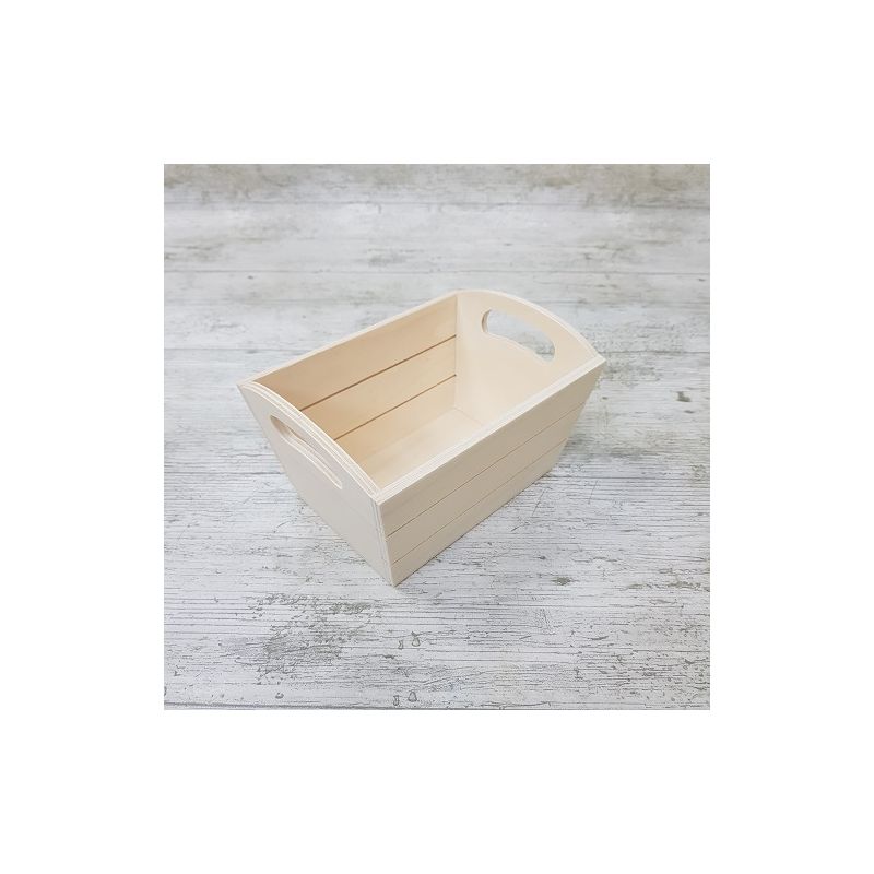 Cesta de madera para decorar con listones laterales.