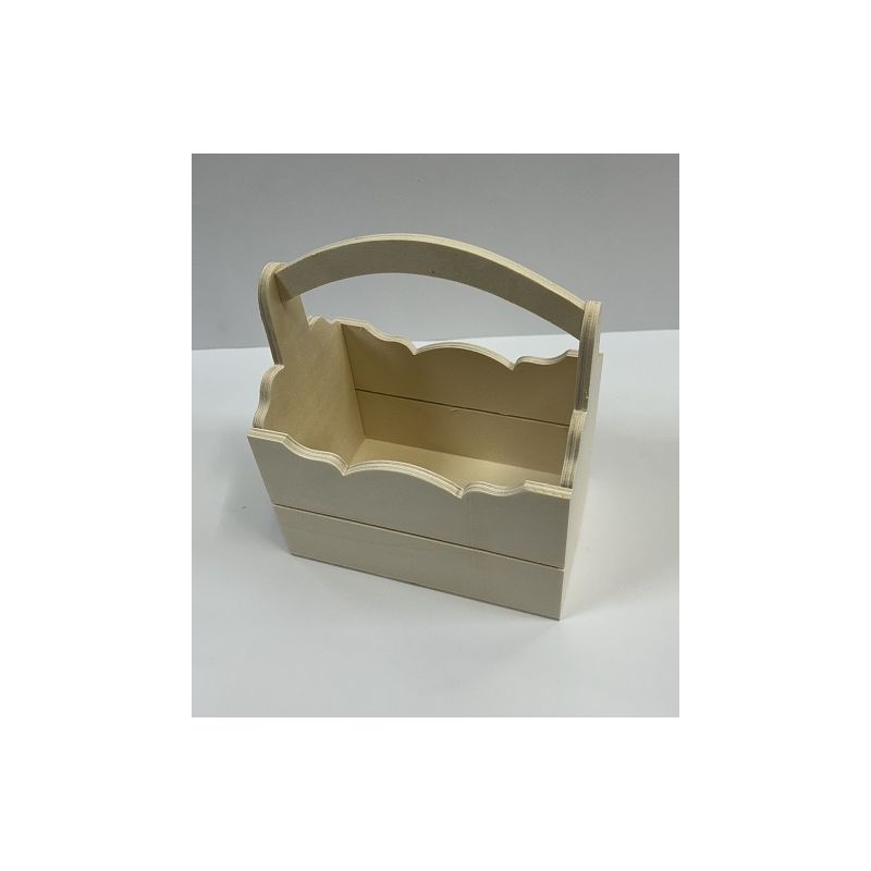 Cesta de madera para decorar con asa superior.
