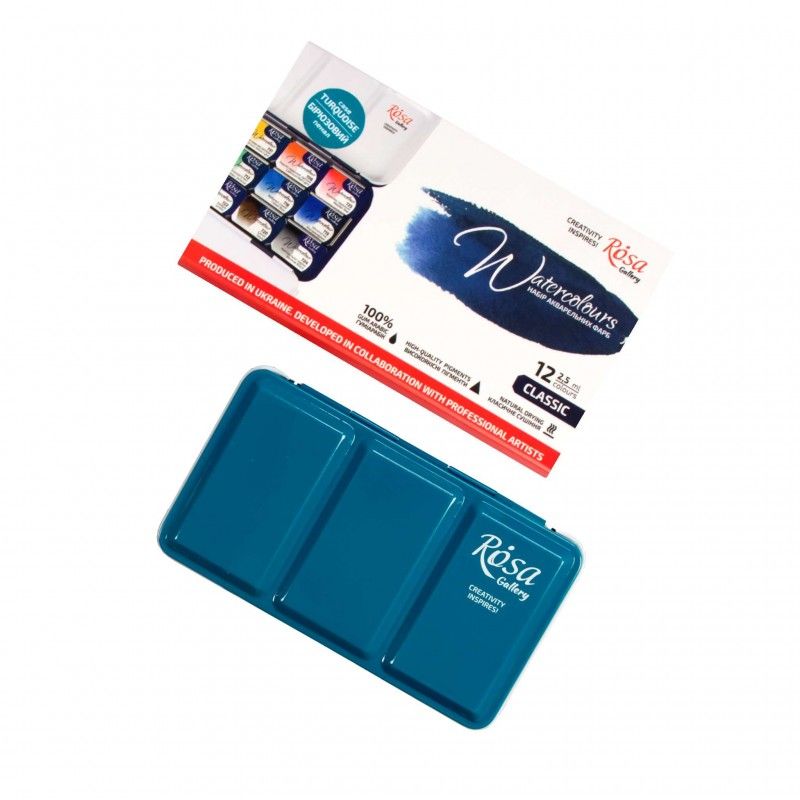 Estuche "CLASSIC" de 12 colores en estuche turquesa. Combina colores tradicionales para técnicas de acuarela. La mayoría de los colores del estuche son monopigmentados, lo que permite crear tonos puros al mezclarlos. Al ser la mayoría de los colores de un solo pigmento, se obtienen numerosos y sorprendentes tonos puros al mezclarlos.