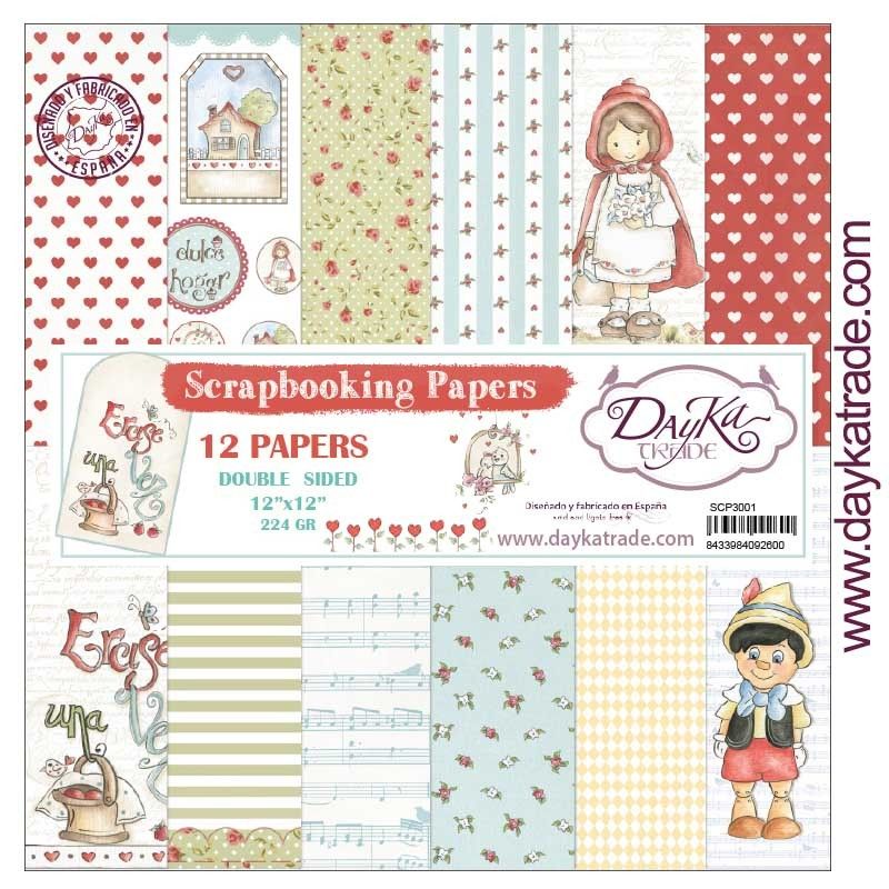 Conjunto de 12 papeles de doble cara de la casa Dayka Trade. 224 gramos a dos caras.