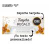 Personaliza tu tarjeta de regalo, eligiendo el diseño entre los disponibles (A, B, C, D).